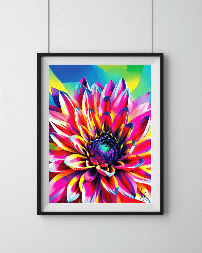 A digital painting inspired by ancient wisdom and the healing frequencies of colour. Each petal radiates intentional energy – grounding reds, calming blues, awakening yellows, and soul-opening violets – inviting light, harmony, and high vibrational energy into your space.