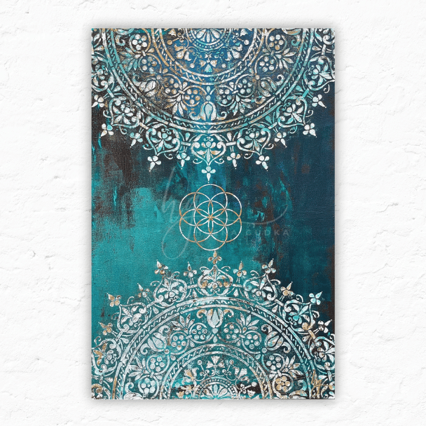 Oriya  explores the Seed of Life as a living blueprint - seven circles folding into a single source. Using layered glazes and gold-lined intersections, the piece holds the rhythm of tide and seed: origin as structure, and structure as invitation. It’s an offering to anyone who needs a quiet map back to themselves.